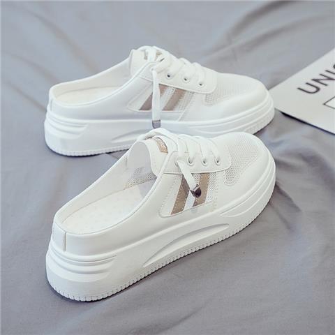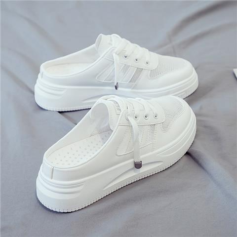 Half trailer small white shoes women's shoes 2023 new summer thick soles for wearing fashionable lazy trendy sandals with a wrapped toe slipper.