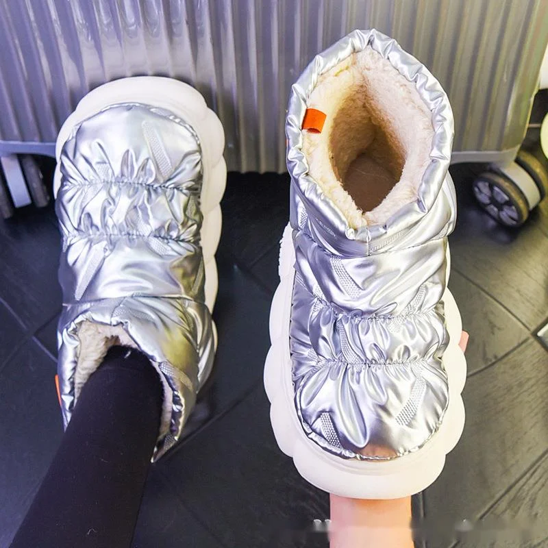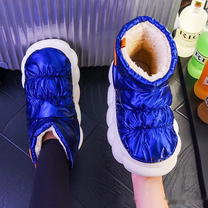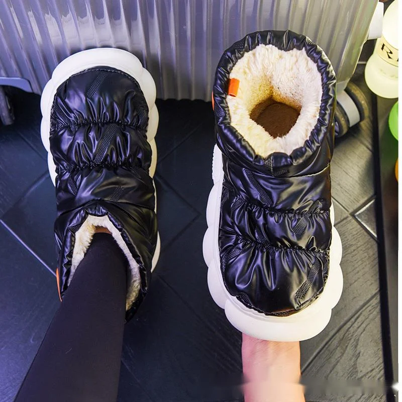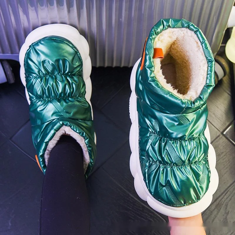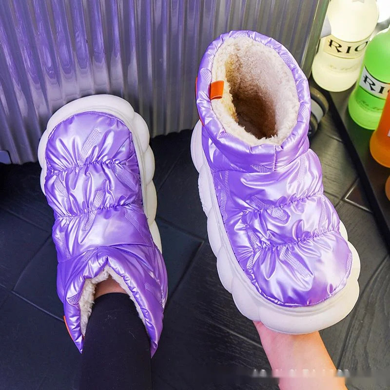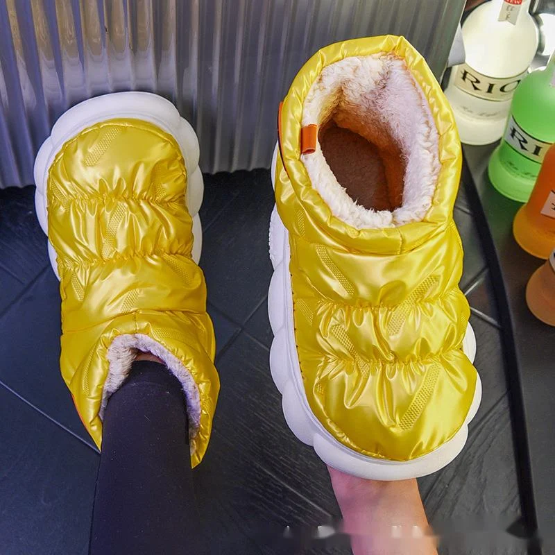 Down cloth bag and cotton shoes for men to stay at home in winter, waterproof, warm, non slip, thick sole with plush, for women to wear in winter, cotton slippers