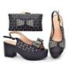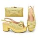 Set di borse e scarpe da donna, sandali con tacco grosso, punta rotonda, decorati con fiocco italiano, con pochette da sera in tinta