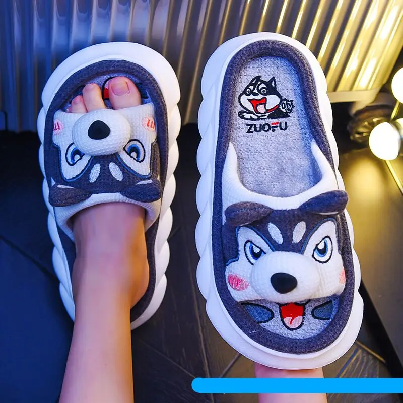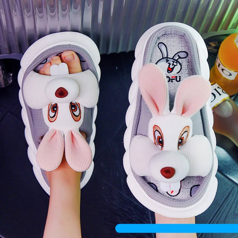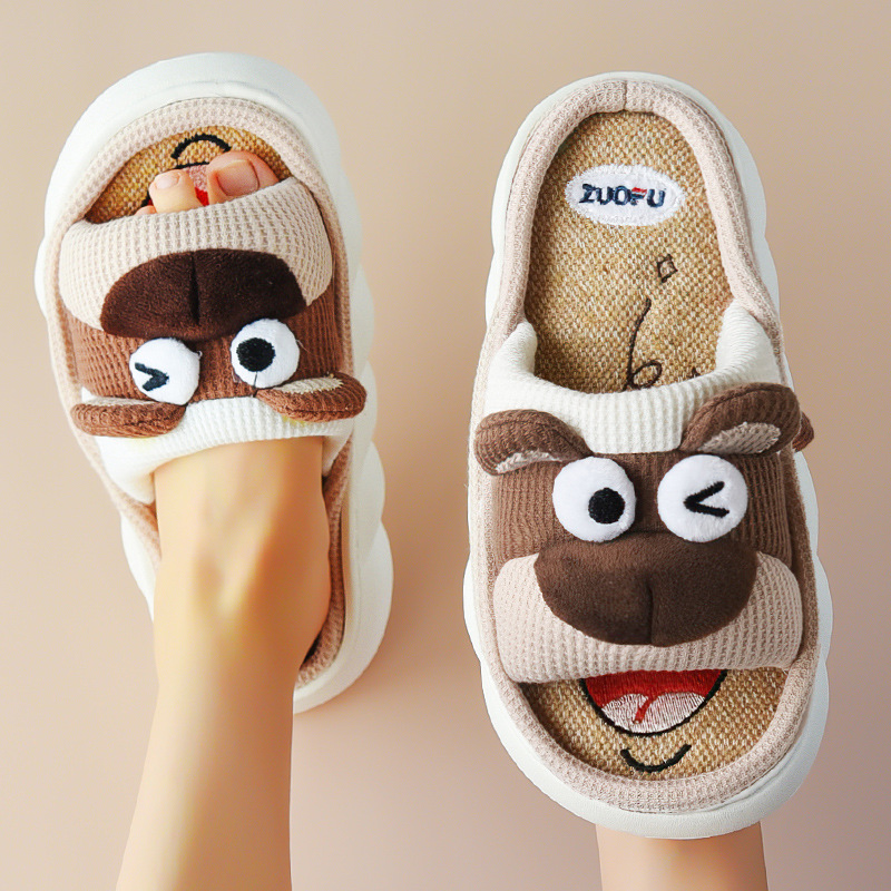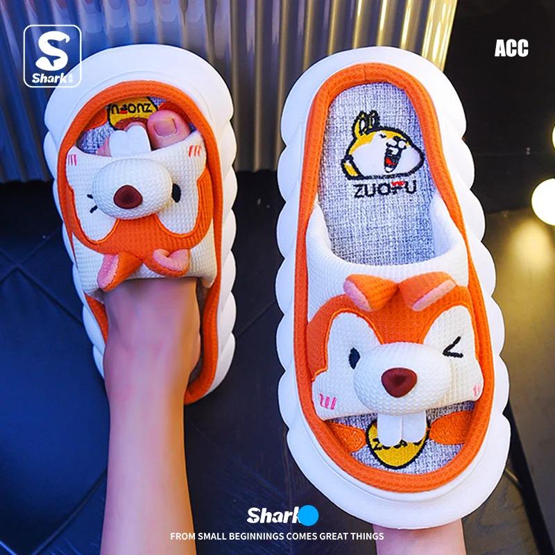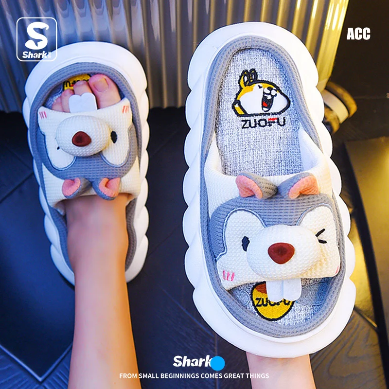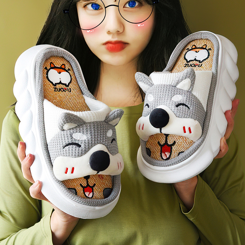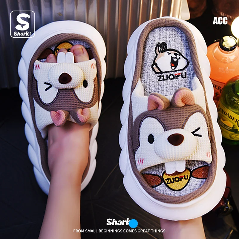 Four Seasons Flax Slippers Female Home Spring and Autumn Wood Flooring Indoor Household Cute Squirrel Cotton Hemp Thick Bottom Slippers Summer