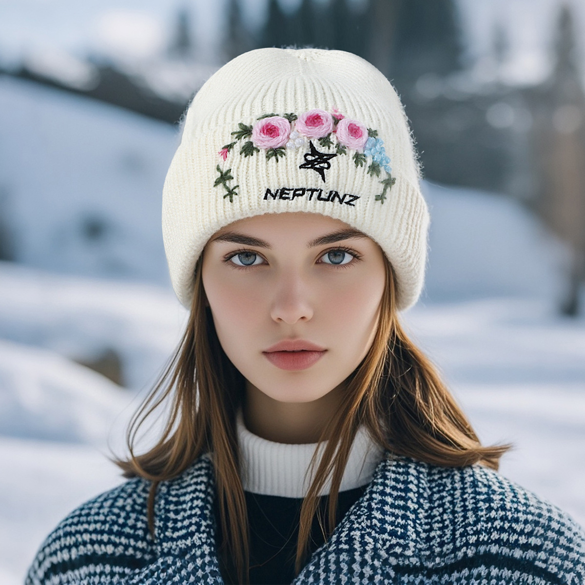 Women's Autumn/Winter Versatile Hand-embroidered Knitted High-end Fashion Crochet Warm Winter Hat