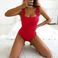 Costume da bagno intero lucido con scollo a V profondo da donna, bikini sportivo primaverile, costume da bagno integrato per piscina e sorgenti termali