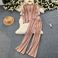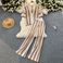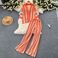 Abbigliamento da donna Commercio estero donna estate scollo a V cardigan lavorato a maglia largo top + pantaloni a gamba larga vestito colore abbinato a righe vestito cavo