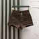 Pantaloncini in denim marrone con stampa leopardata personalizzata da donna, stile alla moda, stile anti-età, stile hot girl, pantaloni attillati elastici a trapezio