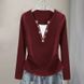 Maglietta a maniche lunghe con scollo a V, taglie forti, con strass, rossa, da donna, novità autunnale, snellente e alla moda