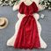 Abito monospalla con maniche a sbuffo da donna, estivo, con gancio cavo, cinturino a fiori, gonna lunga