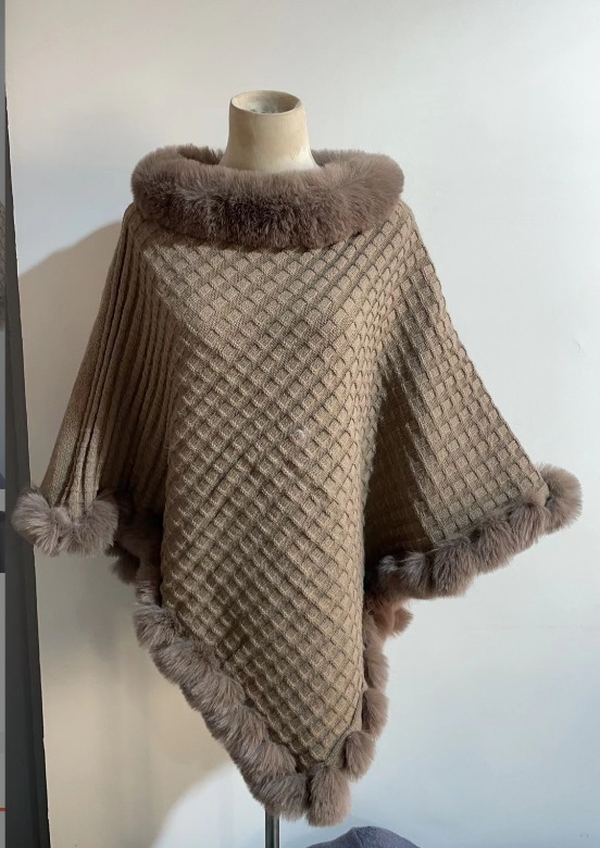 Abbigliamento da donna Pelliccia di coniglio Temperamento Nuovo girocollo Pullover Plaid Moda Scialle Lavorato a maglia
