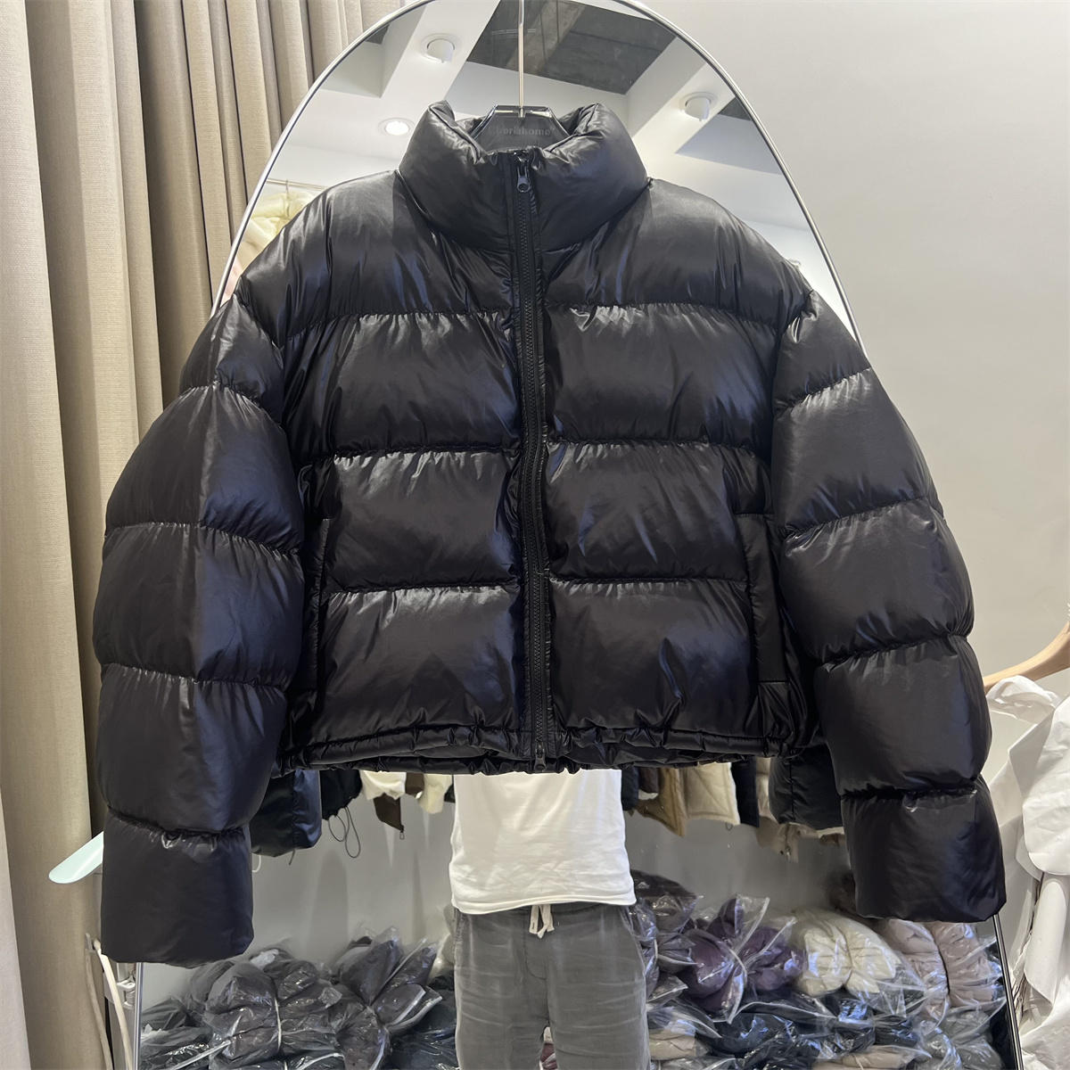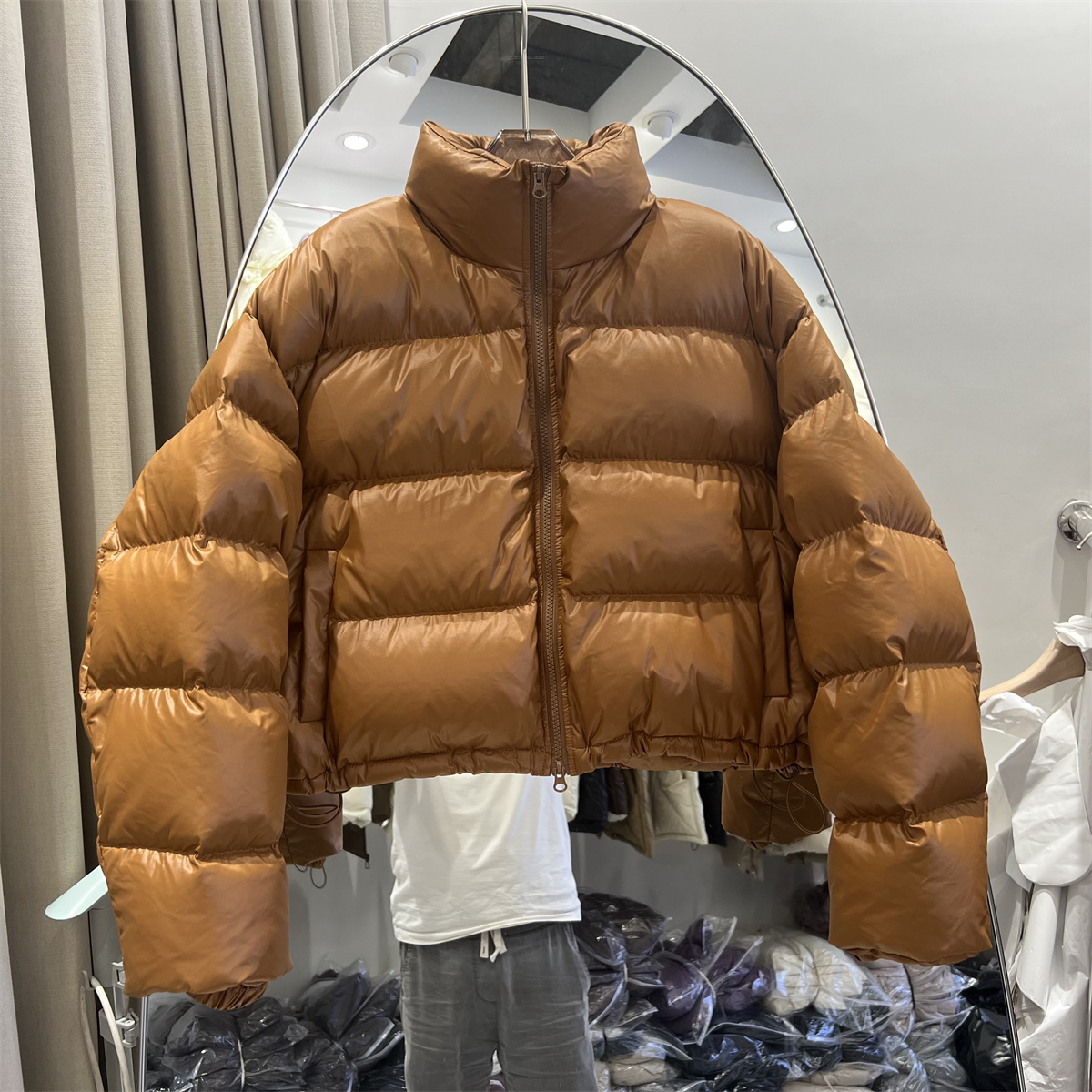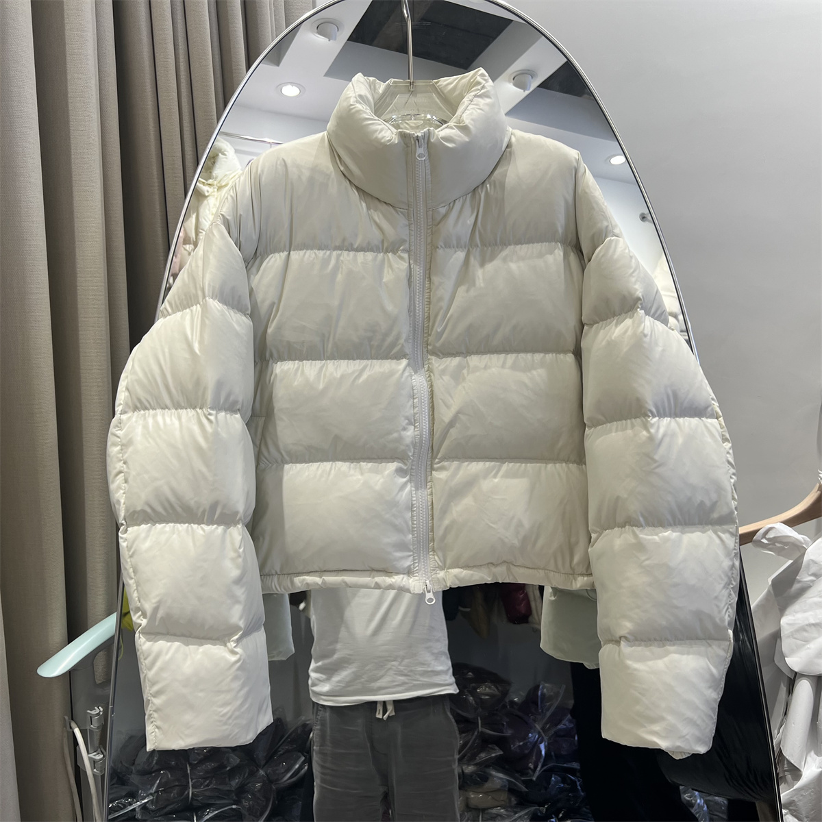 Giacca corta e calda da donna, giacca da donna con colletto alto, perlescente, spessa, calda, bianca, anatra, calda