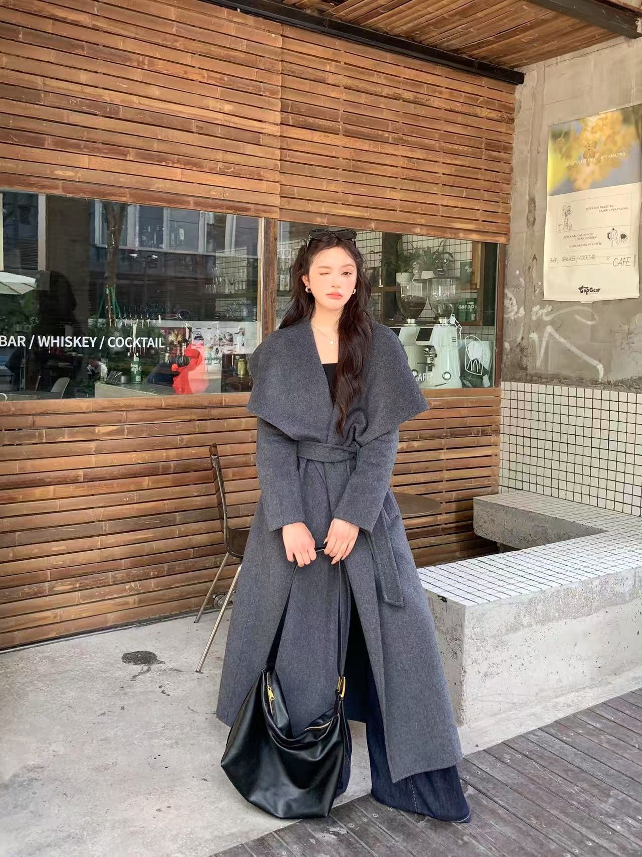 Abbigliamento donna Abbigliamento donna Daye CHI2025 Cappotto di lana double face con risvolto largo e stile pigro autunno inverno Giacca di lana color cammello