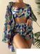 Costume da bagno da donna in quattro pezzi con stampa multicolore a maniche lunghe, camicetta sexy bikini alla moda