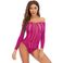 Maglia da donna in rete jacquard glitterata a maniche lunghe con strass