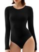 Body da yoga a maniche lunghe da donna, snellente, a vita alta, con controllo della pancia e pantaloncini triangolari.