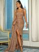 Abito da sera con gonna lunga per banchetto, colore rosso, a vita media, temperamento con paillettes, nuovo temperamento con paillettes da donna
