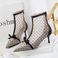Versione décolleté da donna di dolci scarpe dimagranti trasparenti a pois con tacco alto in rete cava per stivaletti corti a punta con tacco a spillo da donna