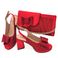 Scarpe da donna, set di scarpe e borse: tacchi alti a bocca di pesce con pochette quadrata (morbida) + fiore di strass