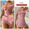 Pigiami da notte da donna, sexy, con fiori, in rete, stampata, plissettata, set da notte