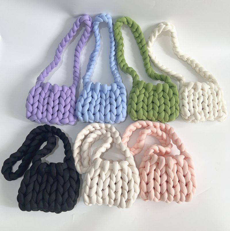 Xiaohongshu, borsa intrecciata con filo di ghiaccio spesso, nuova frontiera, fai da te, borsa intrecciata a mano, riempimento con filato centrale, borsa a tracolla