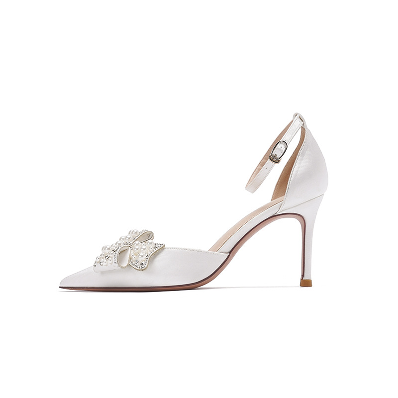 Z-52 Fiocco con diamanti Fata Bianco a punta alta Tacco sottile Singolo raso damigella d'onore Scarpe da sposa Sandali temperamento