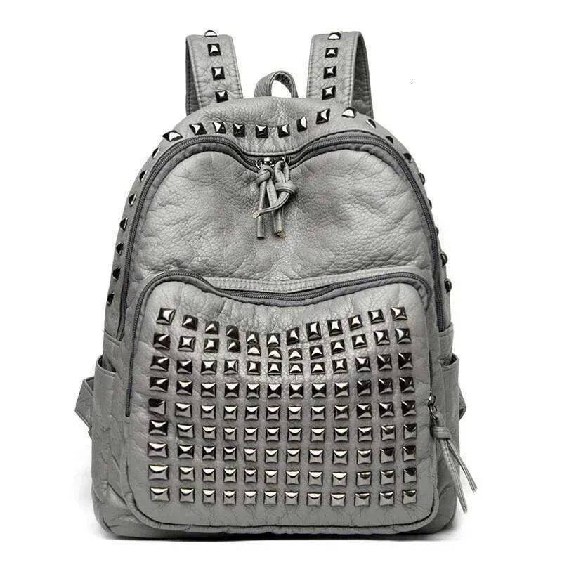 Zaini da donna in morbida pelle con rivetti alla moda, design di grande capacità, per ragazze, scuola, donna, zaino da viaggio, borsa a mano