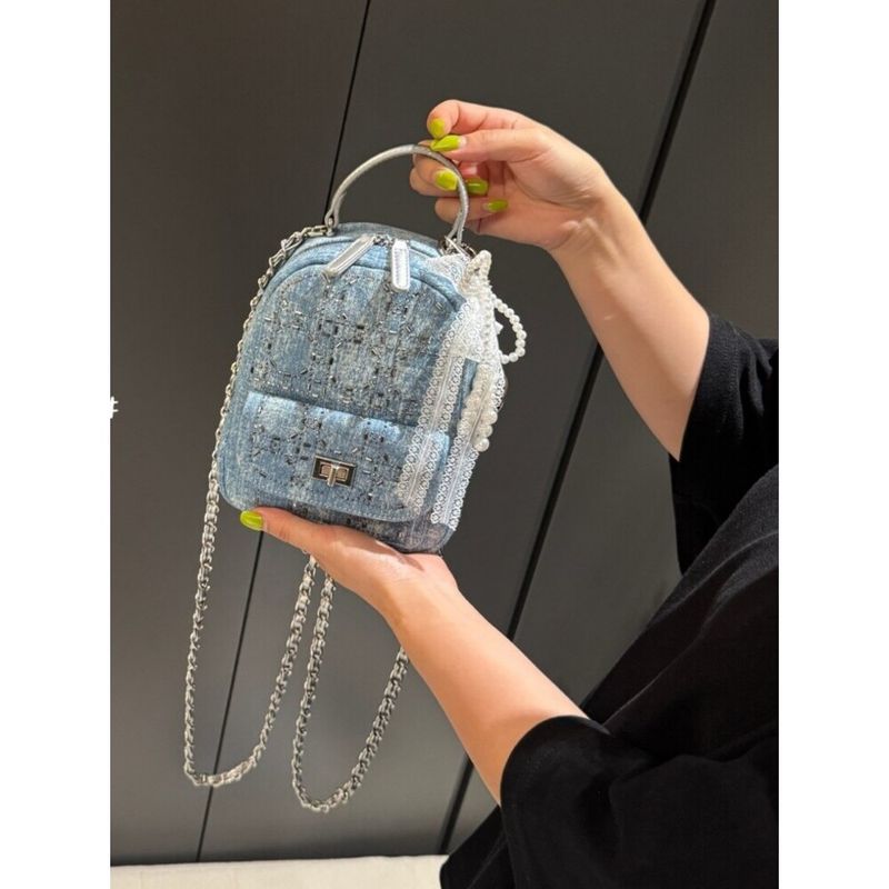 Diamond-Studded Denim Mini Backpack Women's 2025 New Fashionable Versatile Chain Shoulder Bag