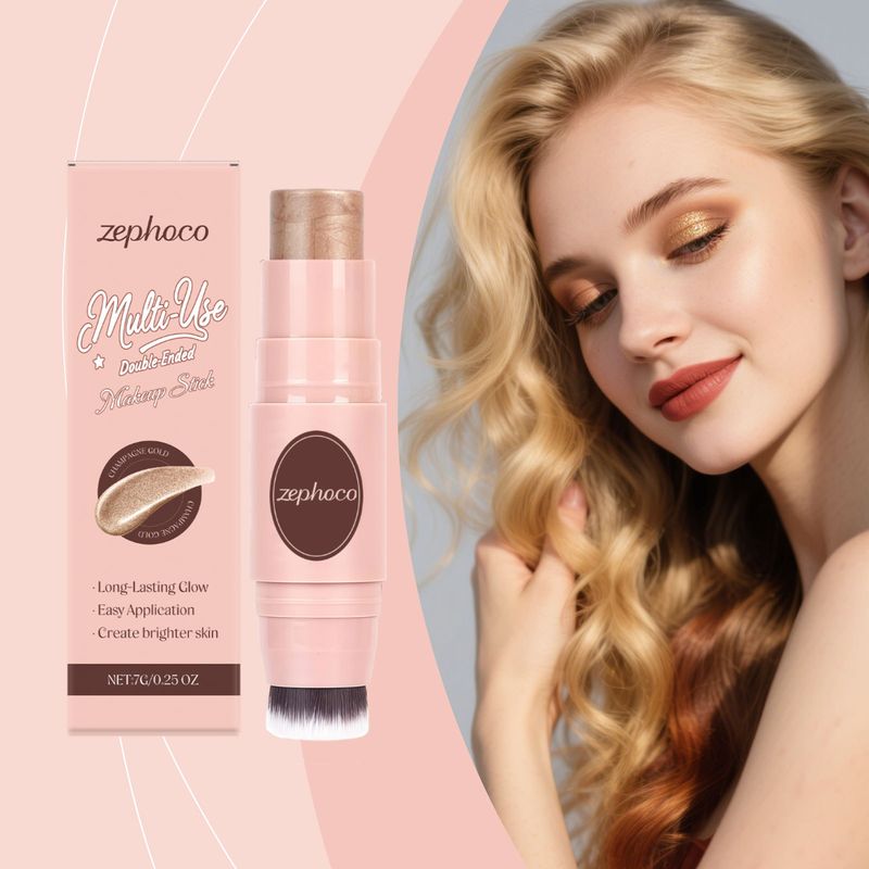 Zephoco Champagne Gold Dual-Ended Makeup Stick Blush Radiant Three-Dimensional Gloss Beginner-Friendly Multi-Functional Makeup Stick